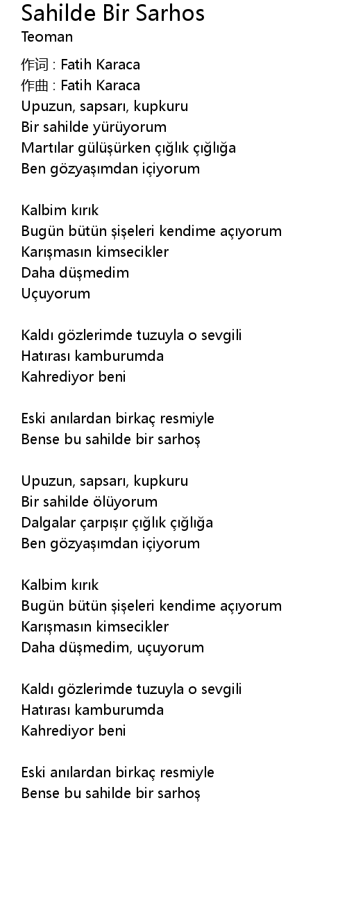 | Kaldı gözlerimde tuzuyla o sevgili | |