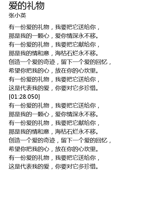 | [01:36.410] | 有一份爱的礼物,我要把它送给你, |