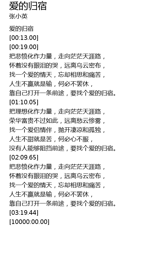 | [00:08.00] | 爱的归宿 |