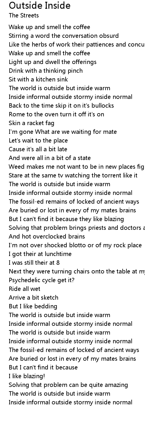 Inside informal outside stormy inside normal |