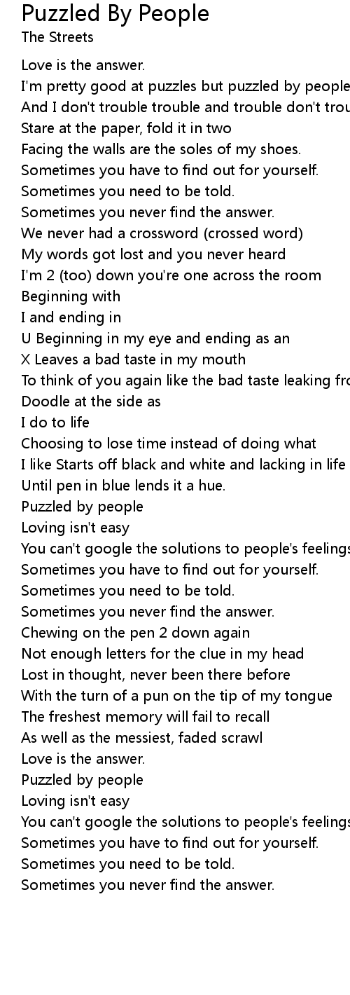 I'm pretty good at puzzles but puzzled by people |