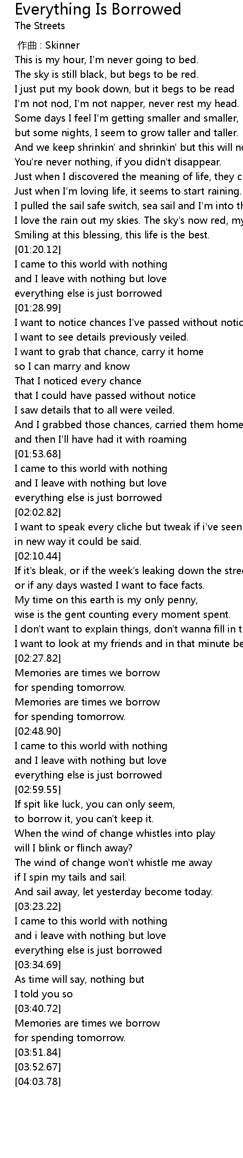 | [03:30.53] | everything else is just borrowed |