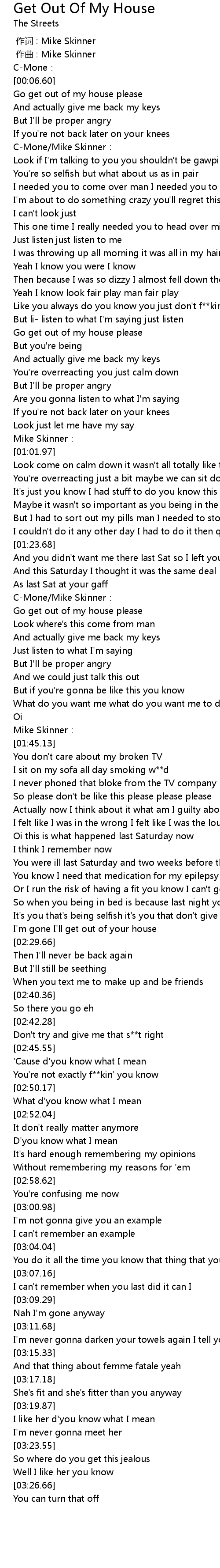 | [00:00.000] | zuò cí : Mike Skinner |
