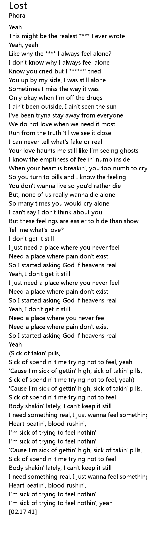 Like why the **** I always feel alone? |