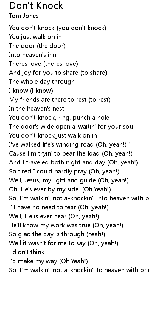 So, I'm walkin', not a-knockin', into heaven with pride |