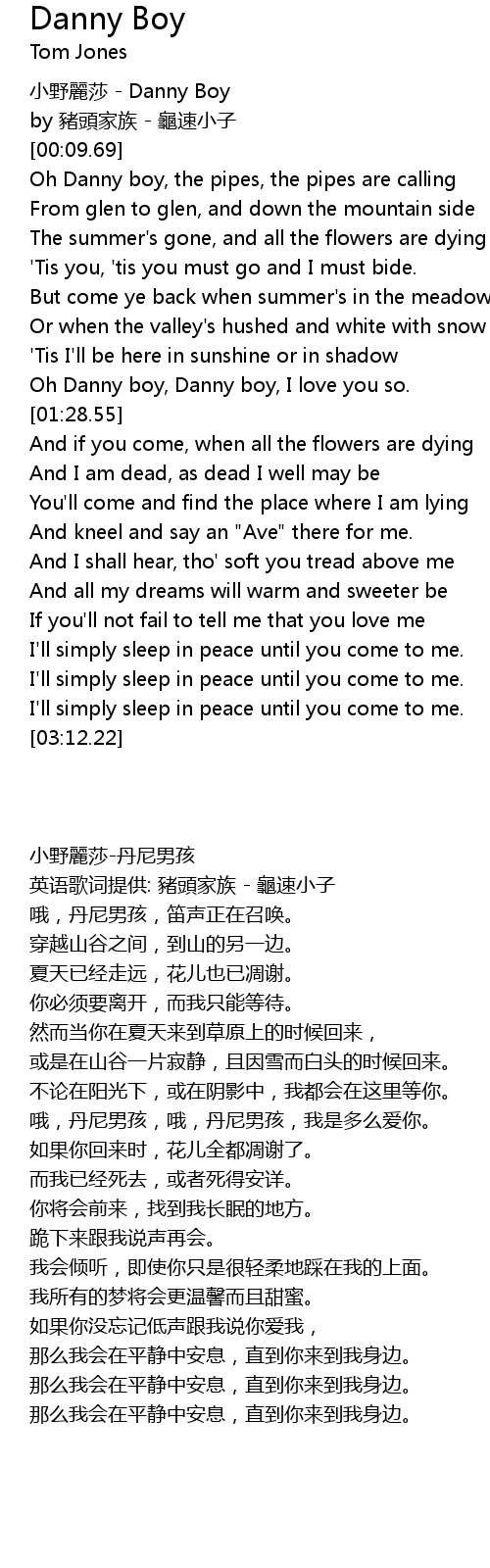 | [00:00.00] | xiǎo yě lì shā Danny Boy |