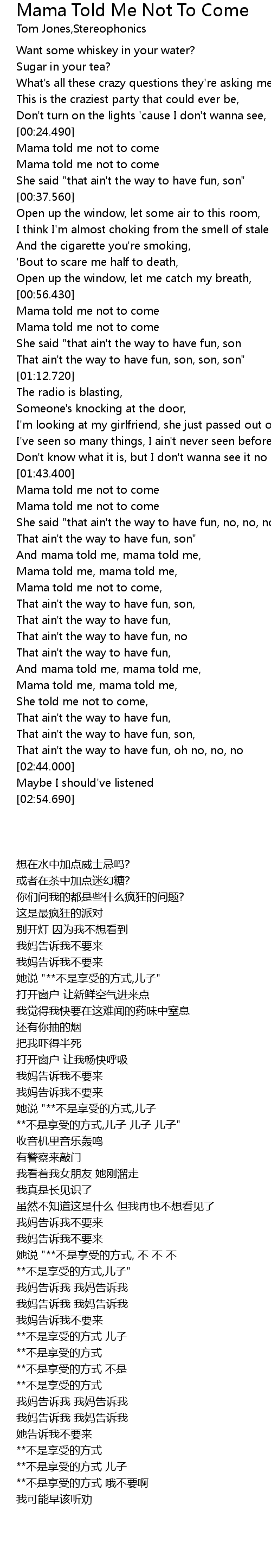 | [01:43.690] | Mama told me not to come |