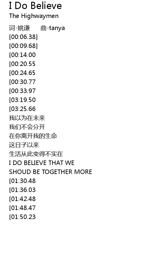 | [03:33.63][03:19.50][00:38.90] | I DO BELIEVE THAT I |
