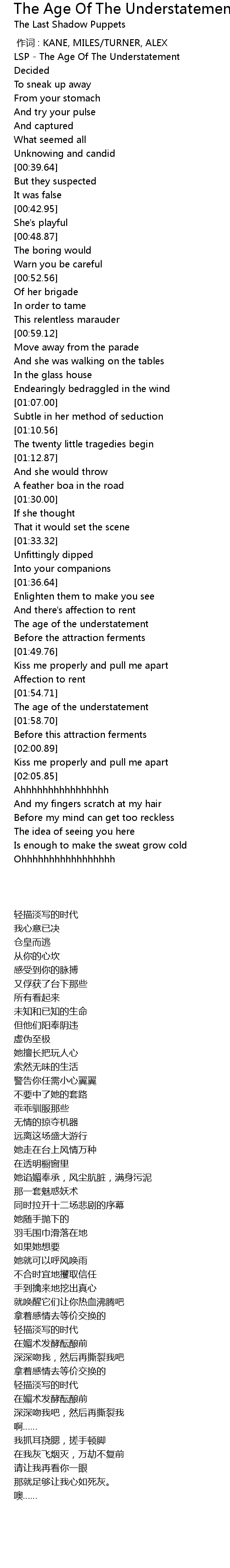 | [00:00.36] | LSP - The Age Of The Understatement |