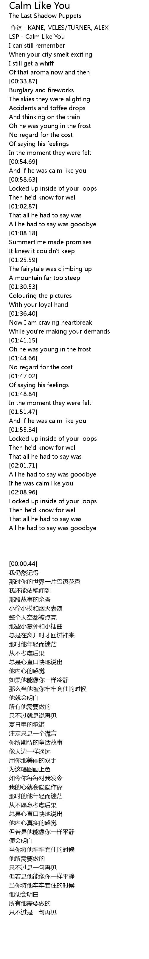 | [00:00.00] | 作词 : KANE, MILES/TURNER, ALEX |