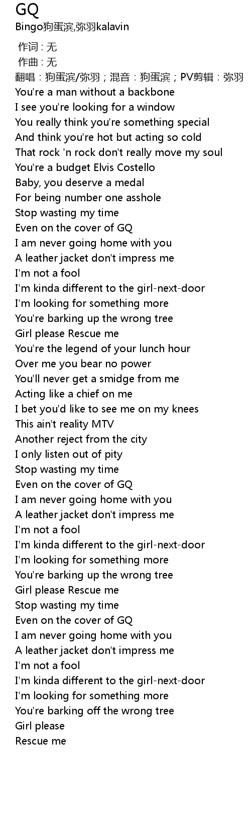 | [00:01.000] | fān chàng: gǒu dàn bīn mí yǔ hùn yīn: gǒu dàn bīn PV jiǎn jí: mí yǔ |
