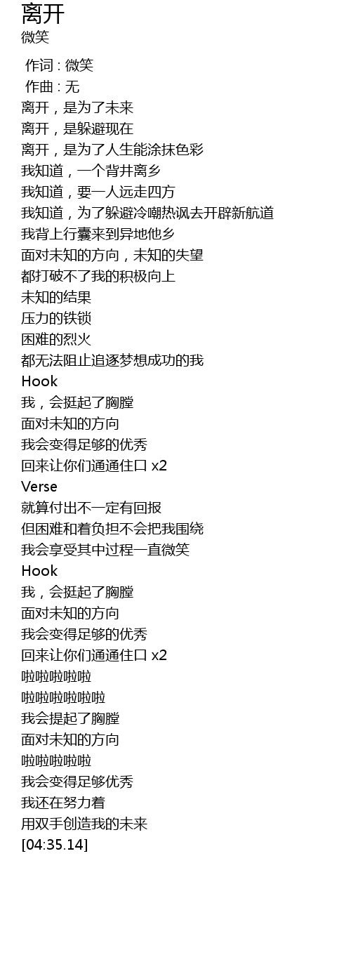 | [00:13.76] | 离开,是为了未来 |