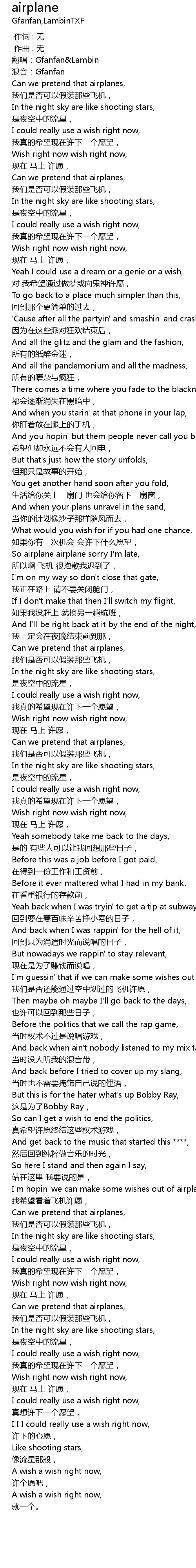 | [01:03.117] | So airplane airplane sorry I'm late, |