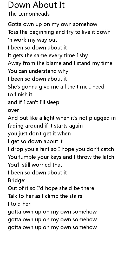I been so down about it |