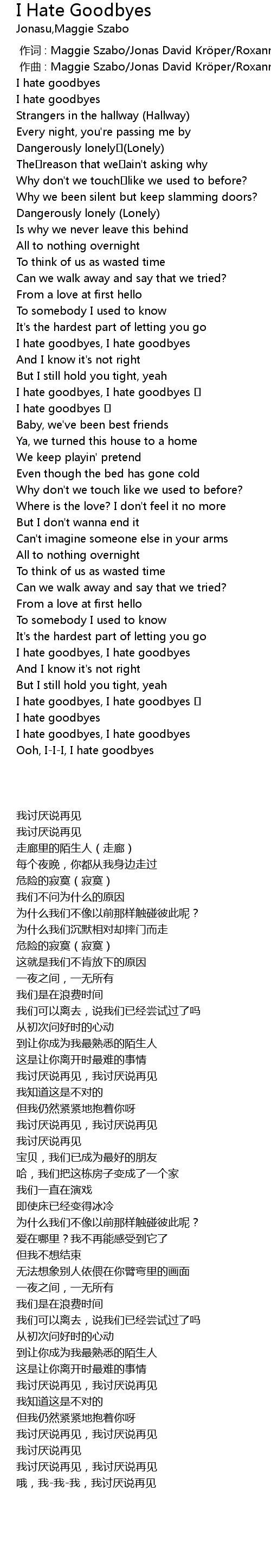 | [02:34.99] | Ooh, I-I-I, I hate goodbyes |