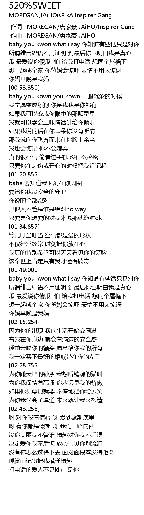 | [00:00.000] | 作词 : MOREGAN/唐家豪 JAiHO/Inspirer Gang |