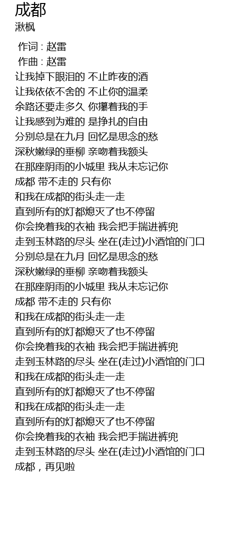 | [04:35.857] | cheng du, zai jian la |