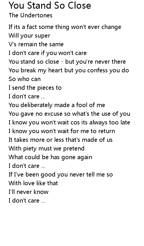 You stand so close - but you're never there |