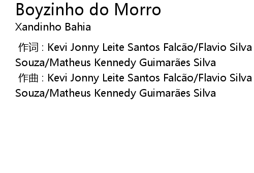 | [00:00.00-1] | zuò cí : Kevi Jonny Leite Santos Falc o Flavio Silva de Souza Matheus Kennedy Guimar es Silva |