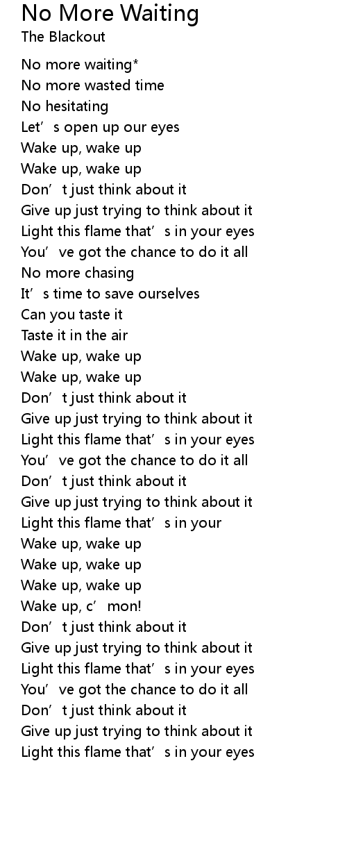 | Song | No More Waiting |