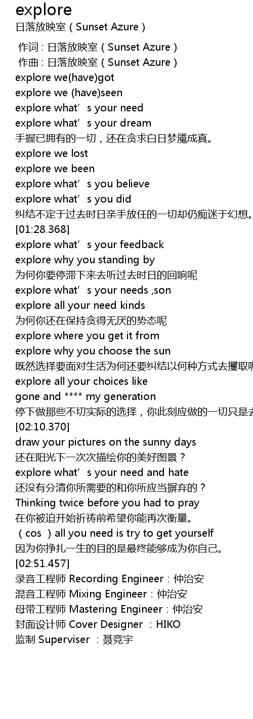 | [00:01.000] | 作曲 : 日落放映室(Sunset Azure) |