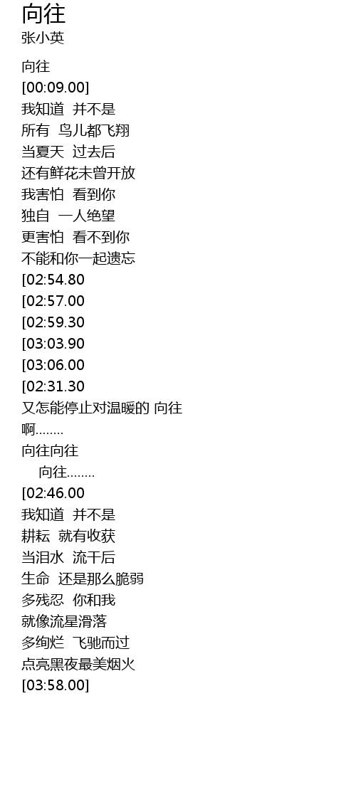 | [02:36.50] | xiàng wǎng xiàng wǎng |