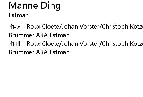 | [00:00.00-1] | zuò qǔ : Roux Cloete Johan Vorster Christoph Kotze Johannes Brü mmer AKA Fatman |