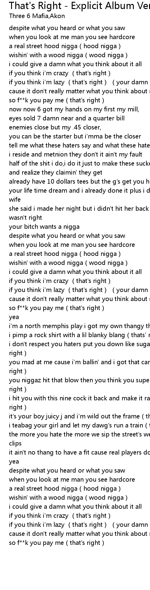 | [01:12.970] | she said i made her night but i didn't hit her back cause her mouth wasn't right |