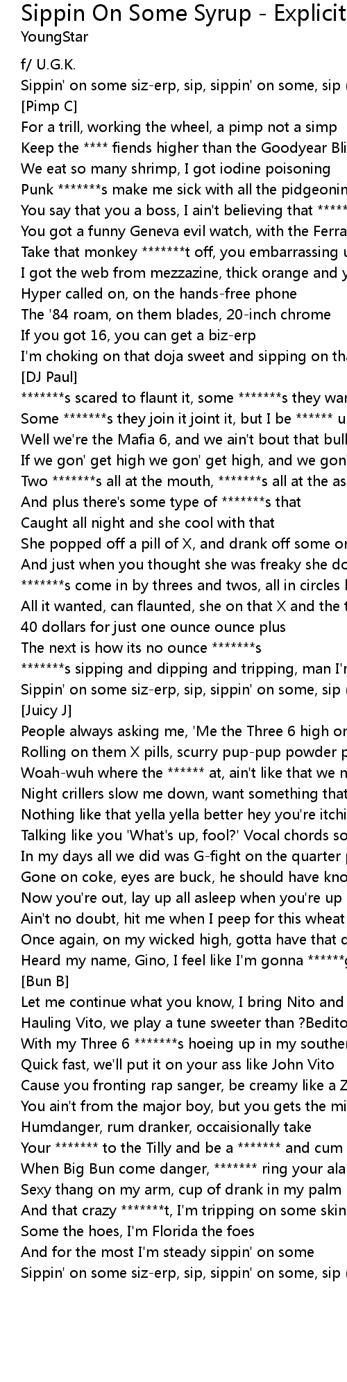 Sippin' on some siz-erp, sip, sippin' on some, sip (Repeat 8x) |