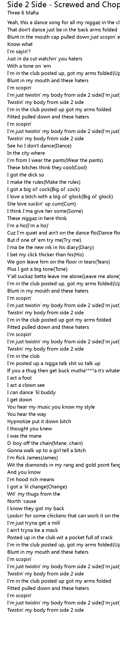 I'm just twistin' my body from side 2 side(I'm just) |
