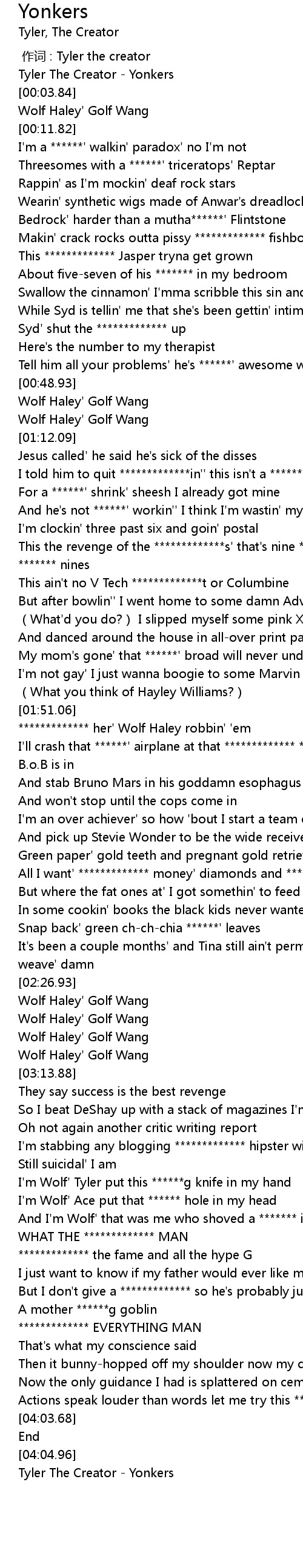 | [00:00.02] | Tyler The Creator - Yonkers |