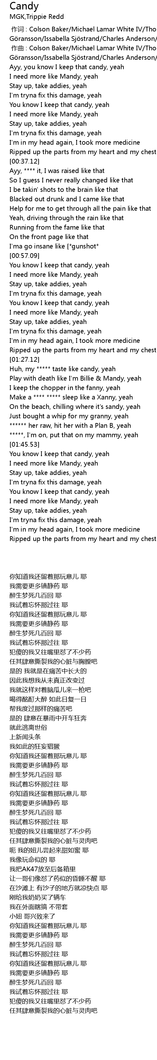 | [00:00.00] | 作词 : Colson Baker/Michael Lamar White IV/Thomas Brown/Anton Göransson/Issabella Sjöstrand/Charles Anderson/Michael Foster |