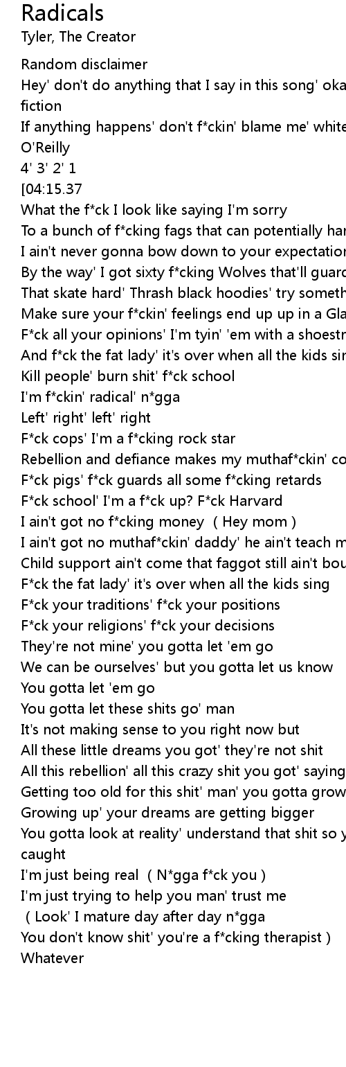 | [01:56.96] | I' m f ckin' radical' n gga |