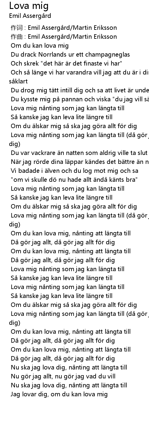 | [00:00.000] | zuò cí : Emil Asserg rd Martin Eriksson |