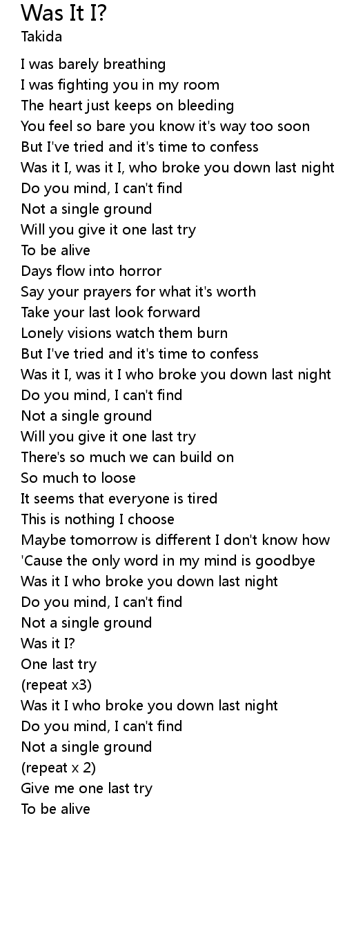 Was it I, was it I who broke you down last night |