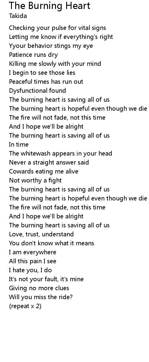 The burning heart is hopeful even though we die |