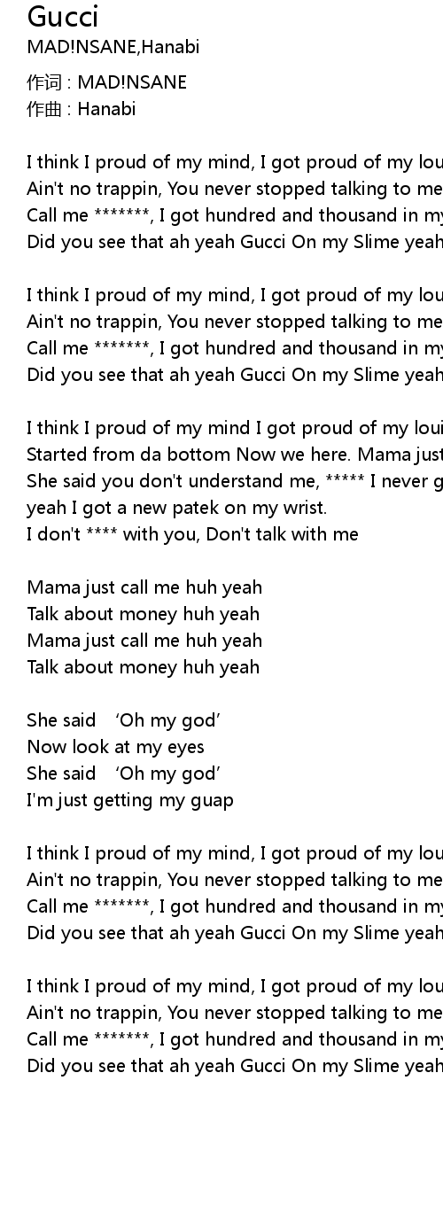 | Did you see that ah yeah Gucci On my Slime yeah | |