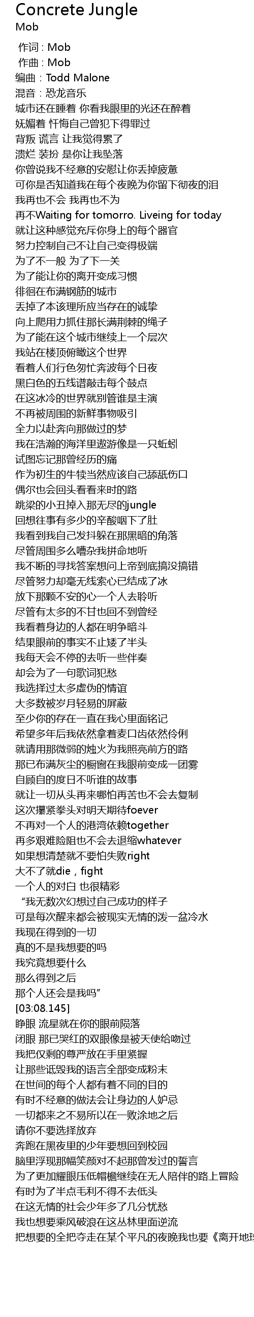 | [00:00.000] | 作词 : Mob |