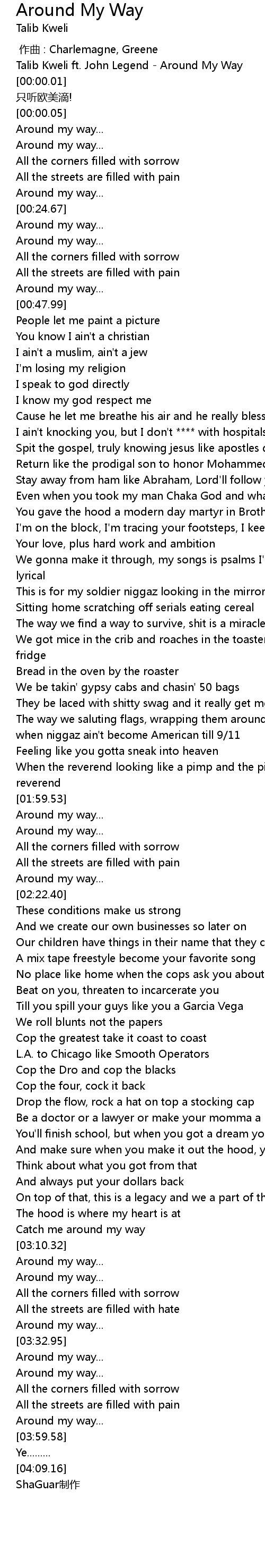 | [00:00.00] | Talib Kweli ft. John Legend - Around My Way |