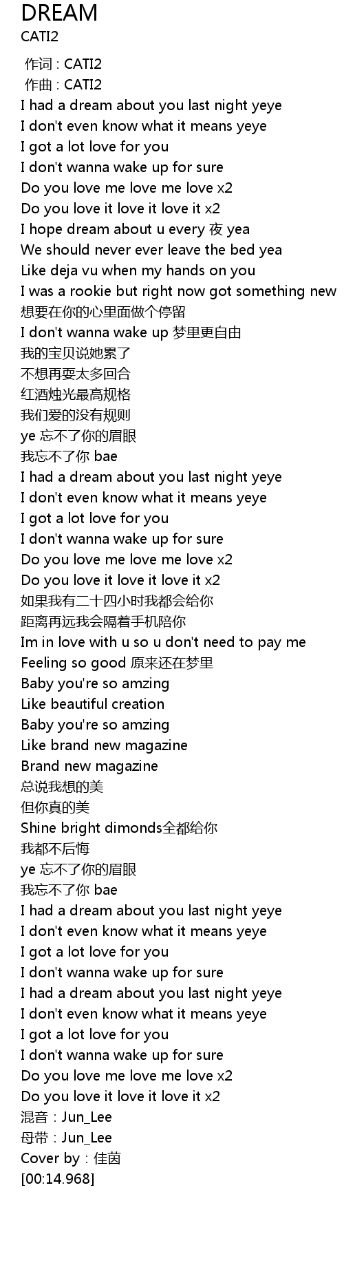 | [00:46.131] | I hope dream about u every 夜 yea |