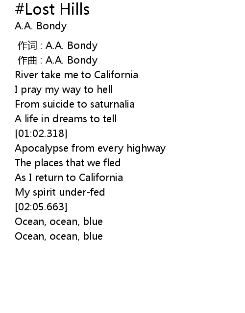 | [00:00.000] | 作词 : A.A. Bondy |