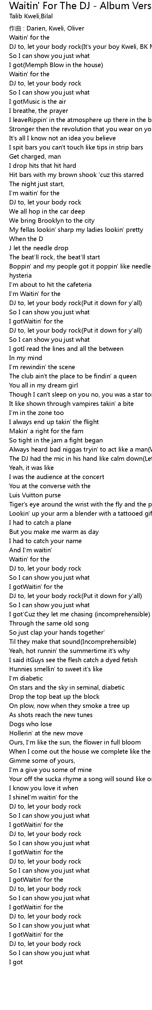 | Always heard bad niggas tryin' to act like a man(Waitin' for the DJ to) | |