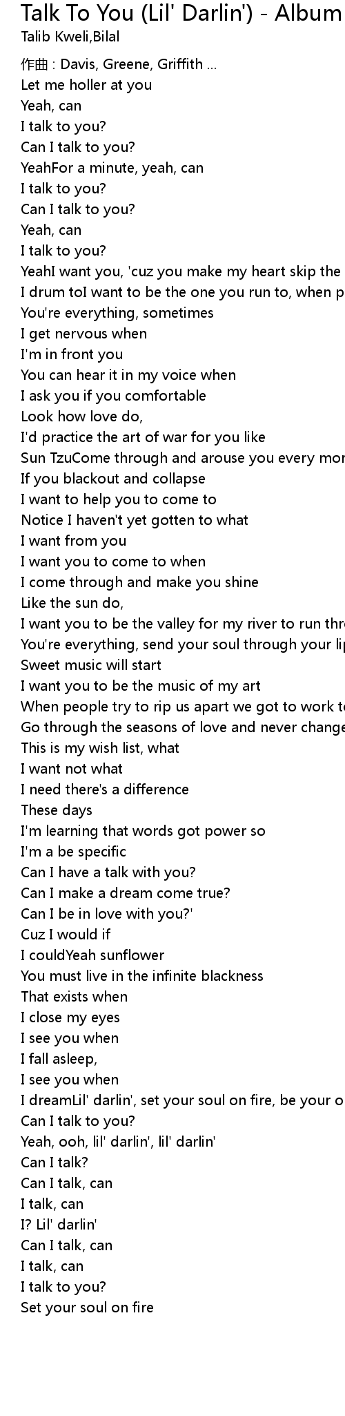 | Yeah, ooh, lil' darlin', lil' darlin' | |