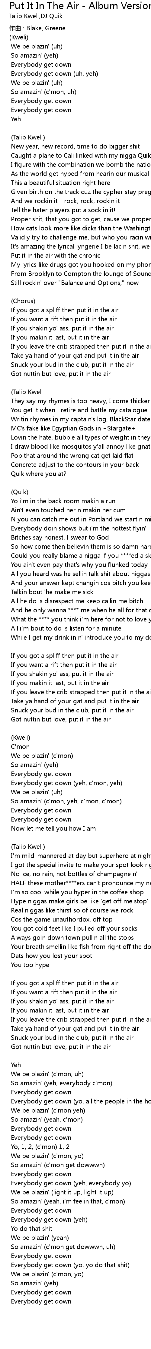 | If you got a spliff then put it in the air | |