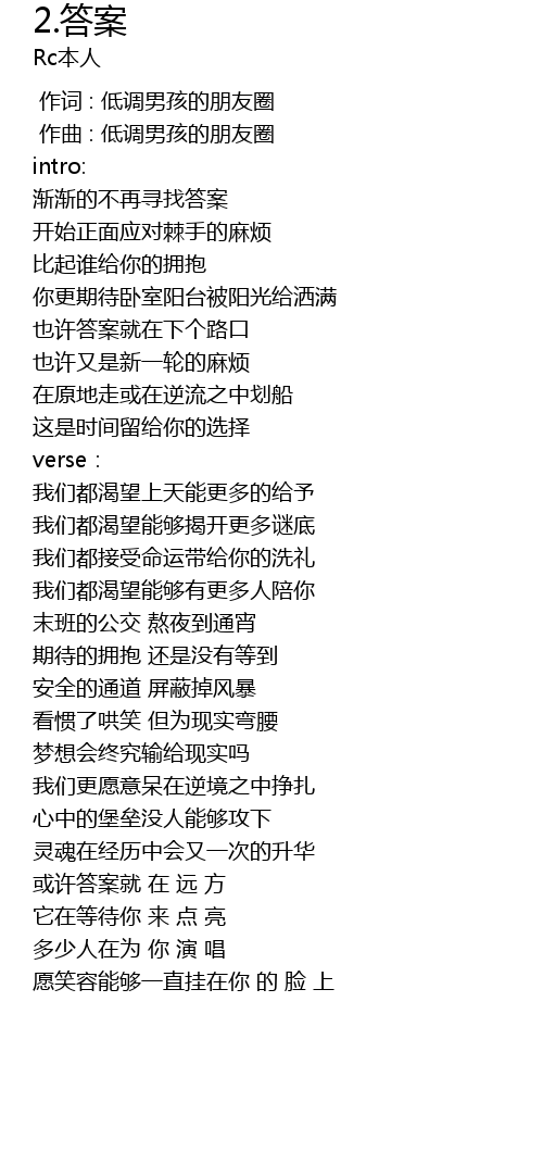 | [00:01.000] | 作曲 : 低调男孩的朋友圈 |