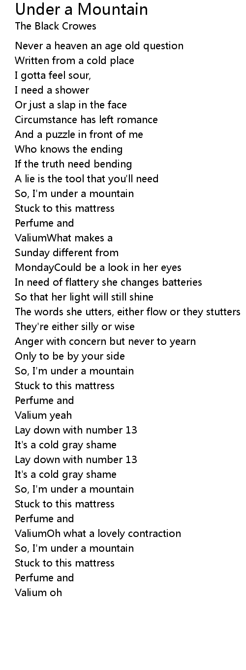 So, I'm under a mountain |