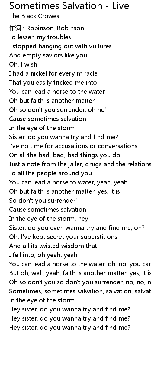 | Sometimes, sometimes salvation, salvation, salvation | |