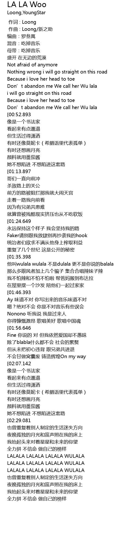 | [01:35.389] | 他叫wulala wulala 不是dulala 更不是你说的balala |