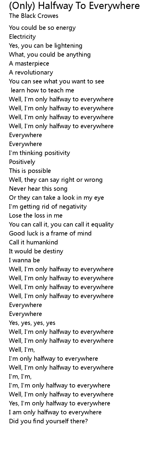 I'm, I'm only halfway to everywhere |