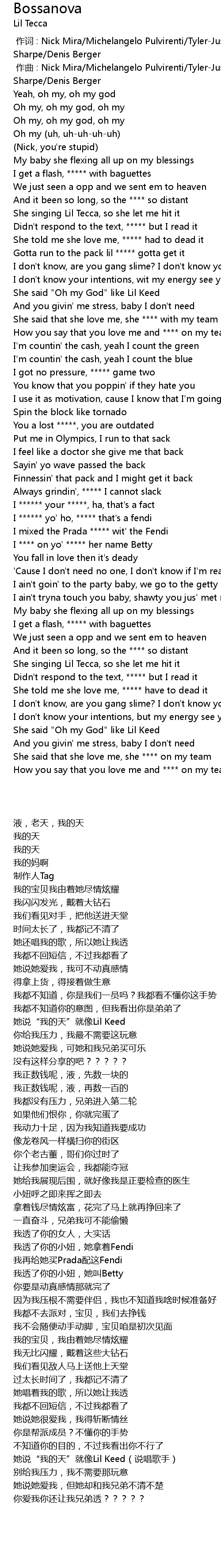 | [00:15.23] | I get a flash, ***** with baguettes |